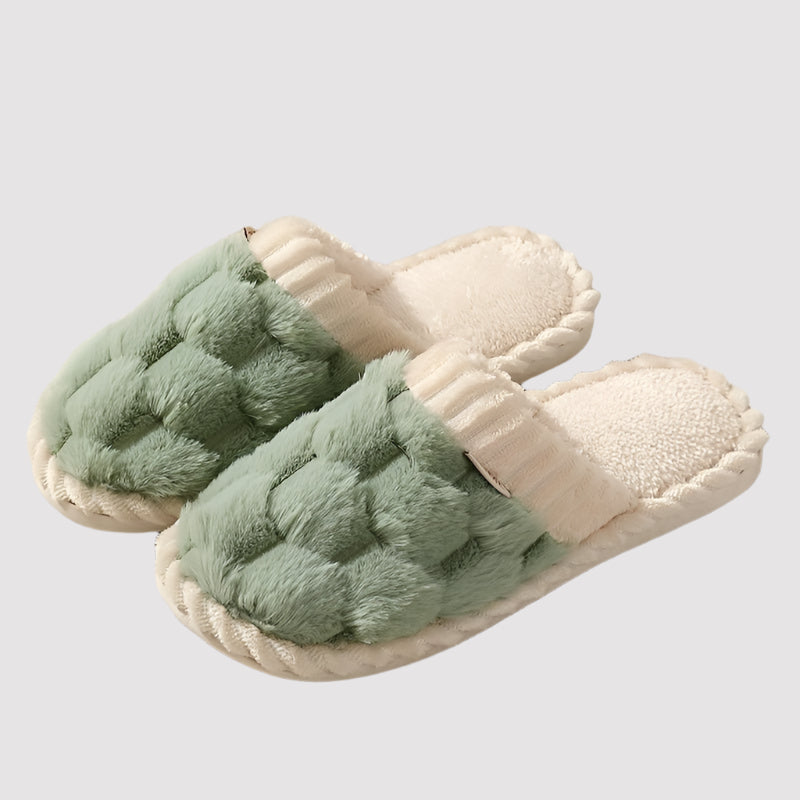 Sustainable Fuzzy Warmth: Crafted from eco-friendly vegan fur, they wrap your feet in a warm, indulgent embrace.