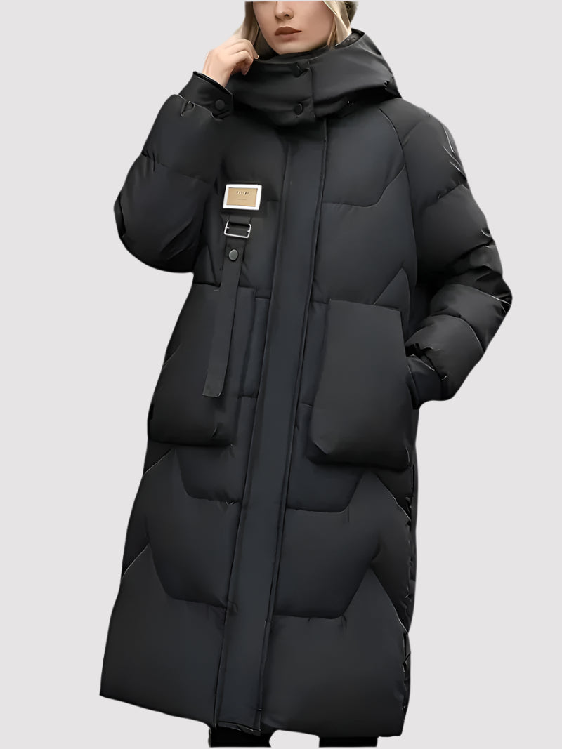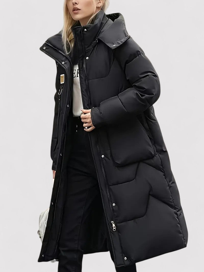 • Graceful Design: Featuring a sleek longline silhouette and a delicately tailored hood, this piece complements every winter wardrobe with effortless charm.